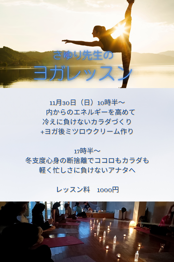 毎月に1度日曜日にお店の2階でヨガをしています。