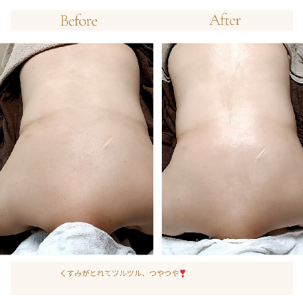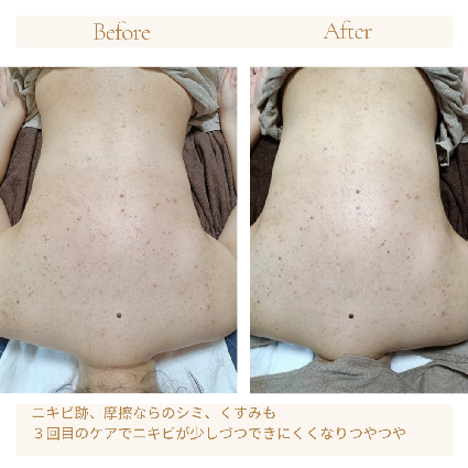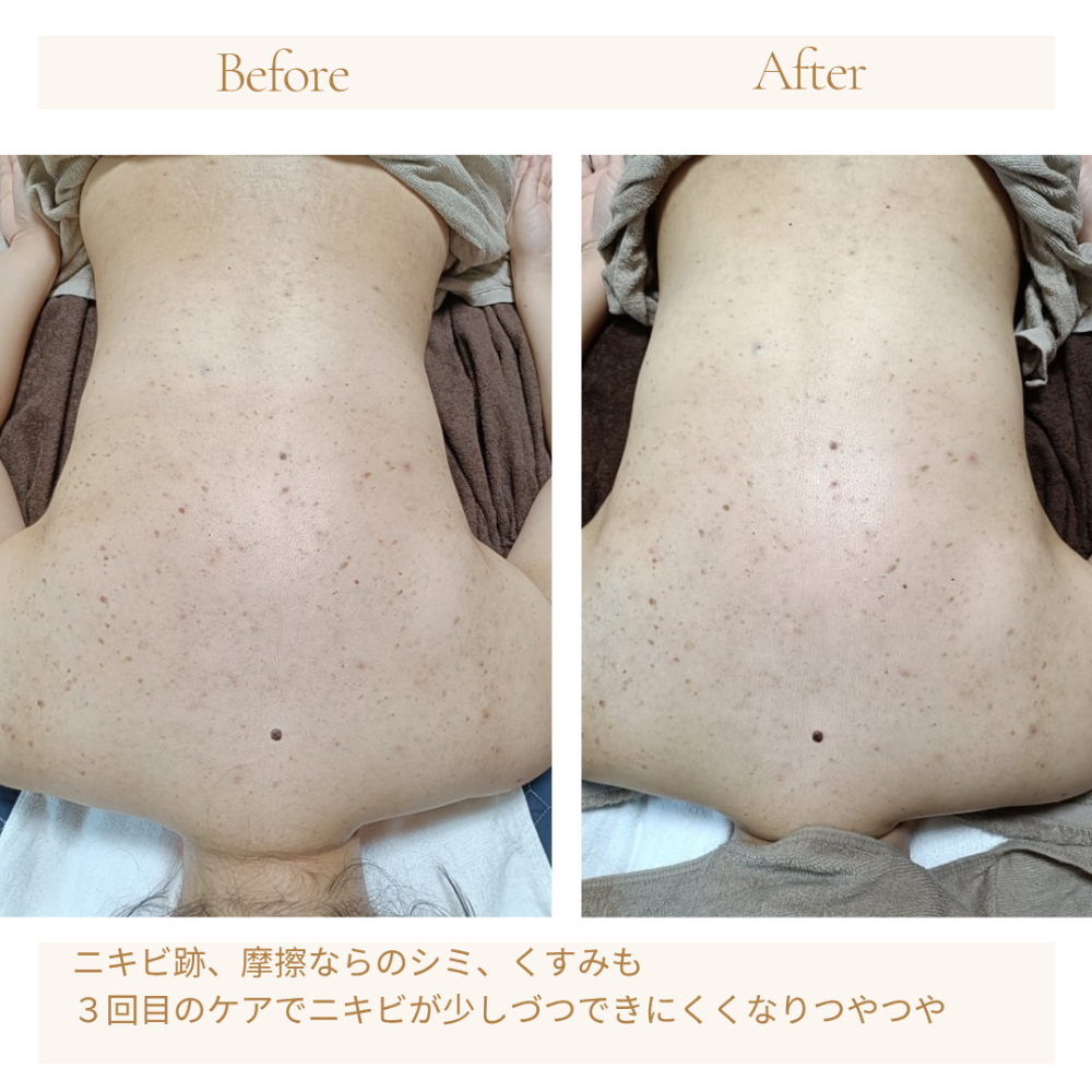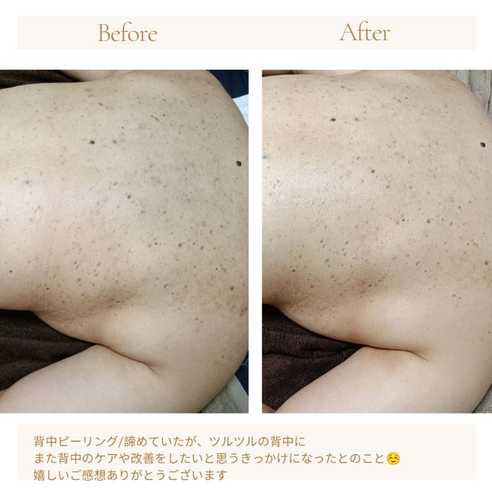 背中も乳酸ピーリングで優しくなめらかツルツル肌へ導きます✨✨肌を出す前からのお手入れがおすすめです🥰